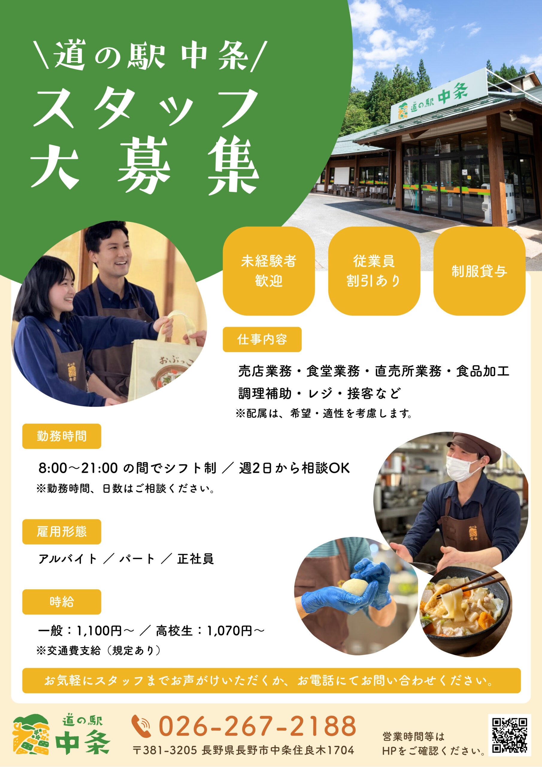 道の駅中条では、スタッフを募集しています。