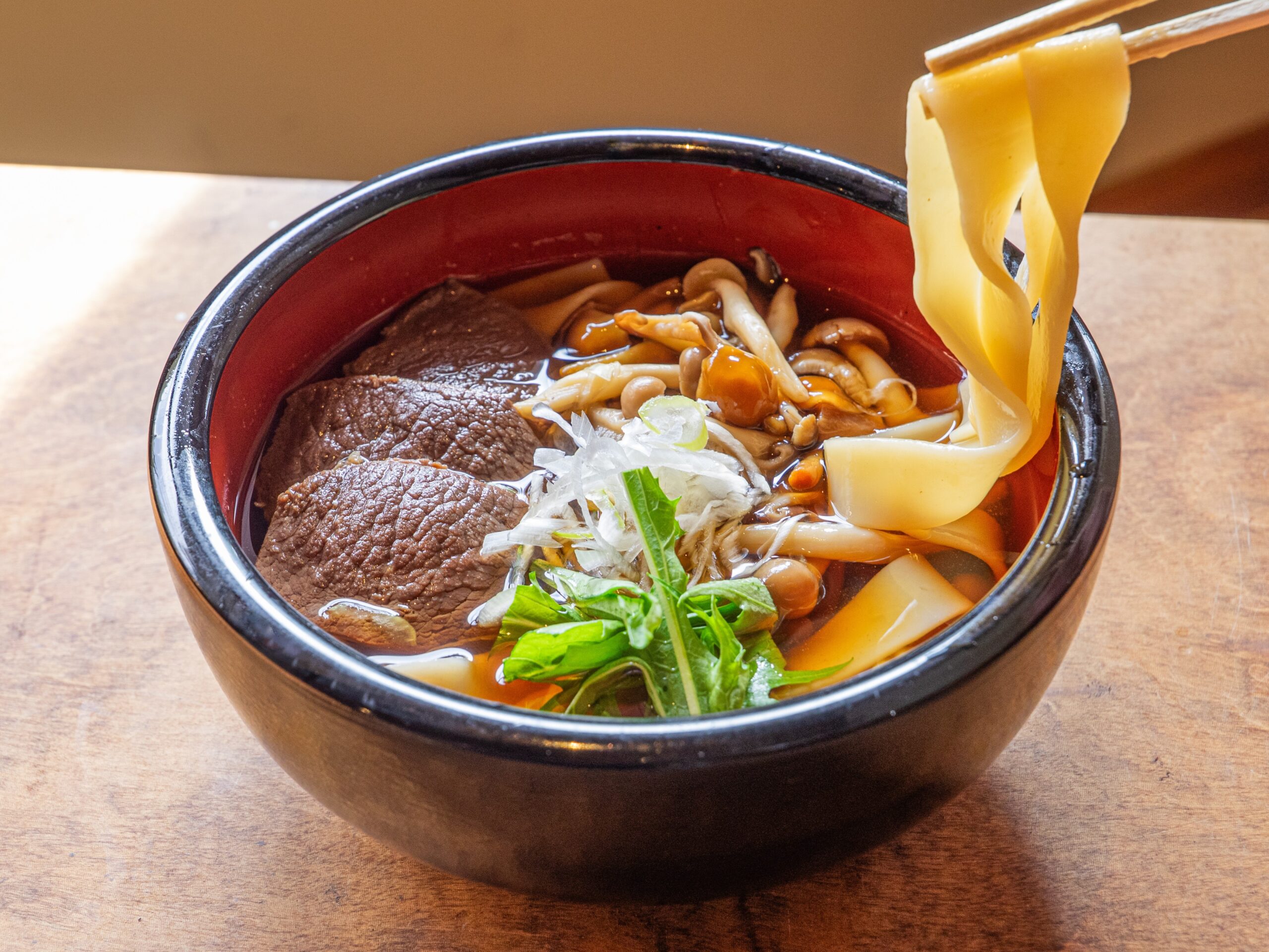 2025年10月30日 鹿肉きのこうどん新発売🦌 秋の味覚をたっぷり詰め込んだ贅沢な一杯『鹿肉きのこうどん』が発売開始いたしました!🍁 売店でも販売している“鹿肉ももスライス”を甘辛く煮込み噛むほどに旨みが広がる味わいに仕上げました🦌 さらに、中条産のなめこ&椎茸を使用香り高く鹿肉との相性も抜群! 麺は地元で親しまれる“おぶっこ”の平打ち麺🍜鹿肉の煮汁を加えたスープがもちもちの麺にしっかり絡みます。 11月末まで提供予定です。 是非ご賞味ください♪